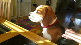 Hund vill handla leksak för frukost