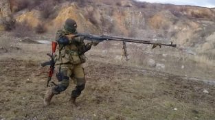 'Rysk Rambo!” Milisman som skjuter från halvautomatiskt pansarvärnsgevär PTRS-41.