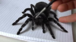 Den tyska konstnären Stefan Pabst skapar en illusion anamorfiki, Rita en stor Tarantula på ett ark papper. Sedan säger till sin unga dotter att närma sig målningen.