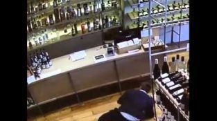 I en källare sprit, en anställd körs med självuppoffring att spara en flaska vin som faller utanför bänken. Bedriften spelades in av butikens Övervakningskamera.
