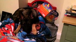 Baron och hans lilla mänskliga Zander gör sig redo för sängen!