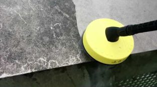 En man tvättar smutsiga trailern med vatten tät. Videon framkallar på något sätt en trevlig njutning...