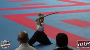 8chroni-Jesse Jane McParland av Irland i en demonstration av kampsport med svärd.
