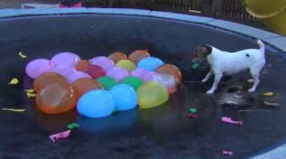 Spaz biter en hel röra av vattenballonger på studsmattan!