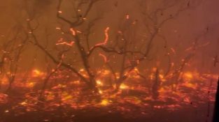 De tjänstemän inom Wildlife Protection kastade mat för djur i skog förstördes av bränder i New South Wales, Australien, För att hjälpa dem att överleva den brända mark.