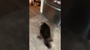 En man gör ett experiment med sin katt, för att se hur snabbt det kan vända kroppen till en nedgång.