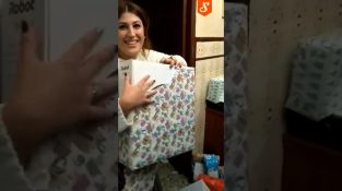 En kvinna mottar en gåva från hennes vänner, en robotdammsugare (roomba) avancerad…