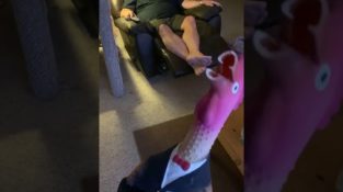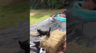 En hund korsar en vattenrutschbana som två personer på en uppblåsbar båt anländer i hög hastighet. Uppblåsbara kolliderar med djuret och bränder i vattnet i en damm. Videon skapare säger [...]