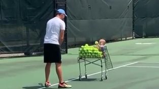 En ny sofistikerad tennisträningsmaskin, som har artificiell intelligens.