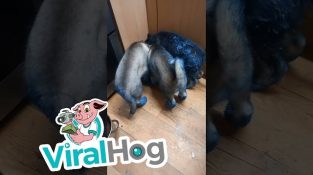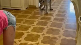 Puma glider på golvet och faller på en kvinna