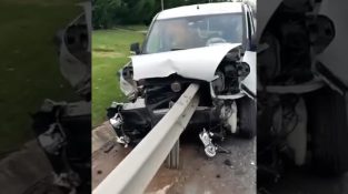 Slutet på en olycka, där en säkerhetsstång är spikad i mitten av en bil.