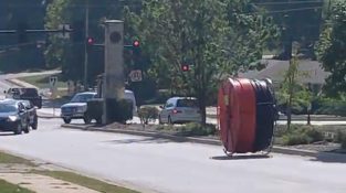 30 september 2021 i staden Kansas i USA, en stor trådrulle bröt bakdörren på en lastbil och började farligt farligt nedför. Det blev ingen skada heller [...]