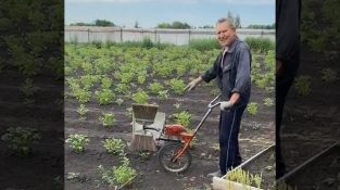 En man byggde en improviserad maskin, med vilken den tar bort insekter i sin fruktträdgård utan användning av kemikalier och bekämpningsmedel.