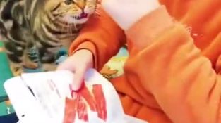 När katten är chef och människan inte vill dela med sig av sin mat.