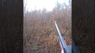 Ett rådjur angriper en jägare medan han springer genom den täta vegetationen.