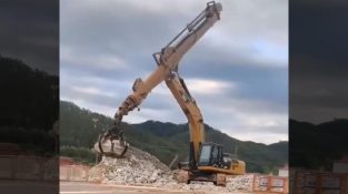 En grävmaskin med teleskoparm, som kan arbeta från stor höjd.