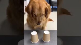 En hund ombeds välja glaset där den goda kakan är. Så småningom kommer han att ändra sig...
