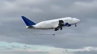 Boeing 747 Dreamlifter-plan tappar ett hjul under start