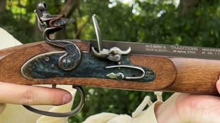 Demonstration av att ladda och avfyra ett flintlåsgevär, en typ av vapen som rådde från 1600-talet till mitten av 1800-talet.