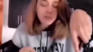 Människor som gör narr av 'vända saker i en panna genom att vända pannan' damen