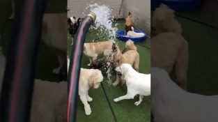 Med en slang i handen, En man visar oss att det finns två typer av hundar: dem som älskar vatten, de som hatar.