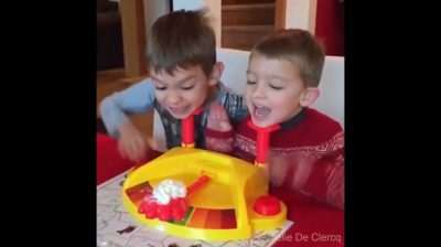 เด็กน้อยสองคนเล่นเกม 'พายเฟซ', ซึ่งเป้าหมายคือการ ตีให้เร็วเท่าที่จะเป็นปุ่ม เพื่อให้คุณไม่กินวงกลมหน้า. แต่ใหญ่ที่สุดจะกวนใจคู่ต่อสู้, ดึงเสื้อกันหนาวที่. จะชนะ และจะทำให้การลงโทษของเล็กที่ครีมดูแลผิวหน้า.