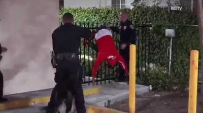 สงสัยที่โยนก้อนหินที่คน ’ s หัวได้รับกางเกงยีนส์ของเขาที่จับในขณะที่เขา ’ s จนมุม โดยตำรวจ