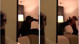 คนอายุ 56 ปีมาถ่ายทำหฤโหด shoving ผู้หญิงไม่ยั่ว