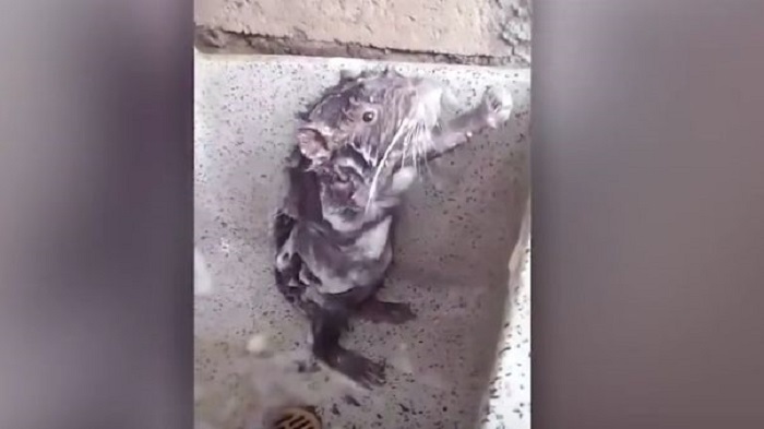 คือผมปลอม. โอกาสที่จะนำสบู่และสิ่งมีชีวิตที่น่าสงสารและพยายามที่จะเอาชนะ.https://www.snopes.com/rat-showering-like-a-person/?utm_source=facebook&utm_medium=social