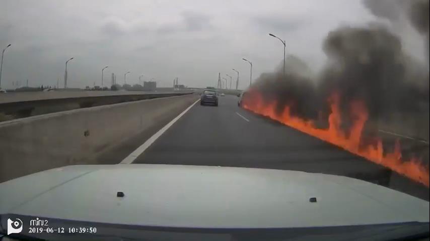 การรั่วไหลของเชื้อเพลิงรถยนต์ใบหลังเส้นทางไฟไหม้เป็นเชื้อเพลิงจี้ใจดำ.