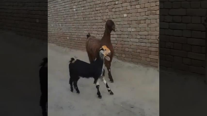 แพะผู้ตัวหนึ่งที่ทำให้การเคลื่อนไหว parkour ที่น่าประทับใจที่จะผ่านข้ามรั้ว.