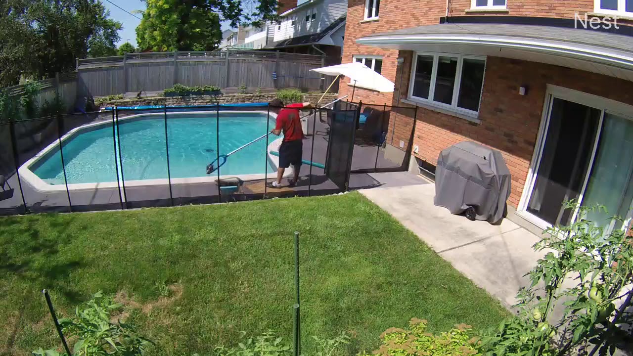 ชายคนหนึ่งใช้สุทธิที่จะดึงกระรอกตายโดยสระว่ายน้ำ, แต่จู่ ๆ สะดุดและซากสัตว์ตก.