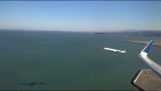 ดินแดนเครื่องบินที่สนามบินในขณะที่มีการซ่อมแซมรันเวย์