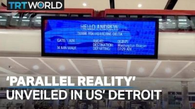 หน้าจอแห่งอนาคตที่สนามบินดีทรอยต์, ที่แสดงพิกเซลต่างกันไปตามตำแหน่งคน
