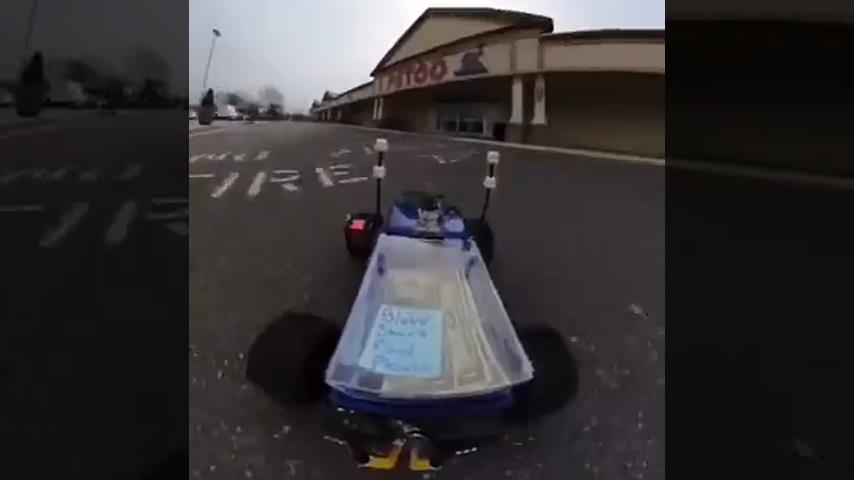 ชายคนหนึ่งในสหรัฐอเมริกาใช้รถยนต์ขนาดเล็กที่ควบคุมด้วยรีโมตคอนโทรล, เพื่อซื้ออาหารสำหรับปลาของเขาจากร้านค้า. รถเล็กตลกมีรถเข็นขนาดเล็กที่มีฝาพับที่ด้านหลัง, และร่างเล็กตรงหน้าที่ขยับด้วยรีโมทเช่นกัน. ดูเหมือนพนักงานร้านขายสัตว์เลี้ยงจะสนุกสนานกับรีโมตคอนโทรลลูกค้าเป็นอย่างมาก.