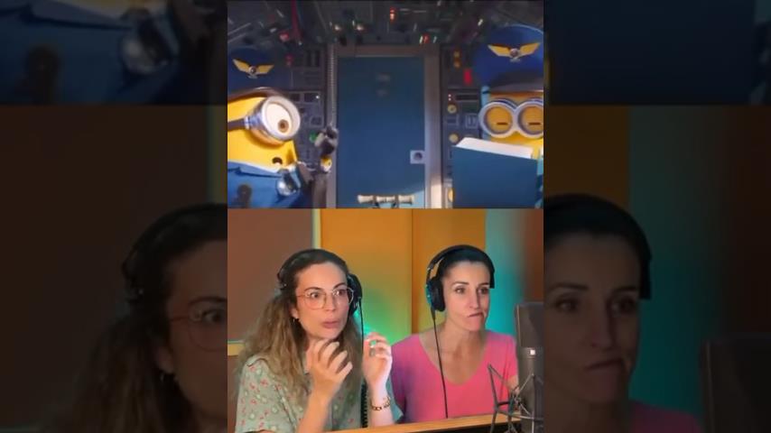 นักแสดงหญิงชาวอิตาลี Arianna Craviotto และ Stefania Depeppe ในคลิปจากภาพยนตร์เรื่อง 'Minions': การผงาดขึ้นของกรู”, ขณะที่พวกเขาพากย์เสียงเป็นภาษาอิตาลี.