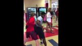 Ένας άνδρας και μια γυναίκα διακόπτονται από ένα απρόσμενο περιστατικό κατά τη διάρκεια μιας αναμέτρησης στο επιτραπέζιο παιχνίδι "Pie Face"...