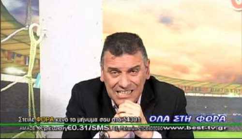 ถังขยะโทรทัศน์ช่องและสูงสุดในการแสดง 'ทั้งหมดฟอรัม'. ผู้นำเสนอ Georgountzos ริบไปบ้าสำหรับสองชนะติดต่อกันของ Kalamata, ว่า จะลบจากการเพิ่มขึ้นของ b ethniki. ฉากทั่วไปที่4:15 ที่พรีเซ็นเตอร์ทำแก้วแตกและหลังจากนั้นไม่กี่นาที7:50 กำลังหามันอีกครั้ง.