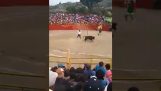 ระหว่างมือสมัครเล่นกีฬาสู้วัวกระทิงในสเปน, คนทำงานในเวทีพยายามผ่านฝั่งตรงข้าม. วัวหนุ่มแต่โจมตี และโยนลงหมดสติ. ชายคนนั้นฟื้นสติหลังจากกี่วินาทีโดยไม่ได้รับบาดเจ็บสาหัส.