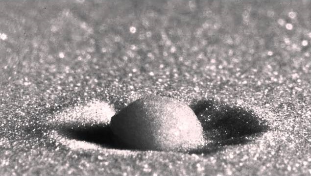 วิดีโอชุดนี้แสดงให้เราเห็นผลกระทบของหยดน้ำที่ตกลงบนพื้นทราย ซึ่งเป็นปรากฏการณ์ที่คุณคงเคยเห็นบนชายหาด. ถ่ายภาพความเร็วสูงเผยรายละเอียดเกี่ยวกับผลกระทบของความเร็วผลกระทบต่าง ๆ ในน้ำ. สัณฐานวิทยาของปล่องภูเขาไฟที่สร้างจากผลกระทบ, เหมือนกับที่ปล่องดาวเคราะห์ที่รุนแรง.