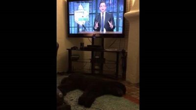 สุนัขทุกคืนทำงานในเตียงของเขา, เพียงแค่ได้ยินเสียงปิดทีวี.