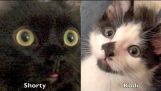 Adrianna ทำผมสอนวิดีโอกับเพื่อนเมื่อแมวมีไอเดีย. แม้ว่ามันดูมากแย่ลง, ลูกแมวแค่กลัว ไม่มีอะไรมากไปกว่านั้น.