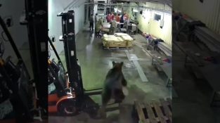 เมื่อวันอาทิตย์ที่ 28 กรกฎาคม 2019, หมีสีน้ำตาลเดินเข้าไปในโรงงานแปรรูปปลาใน Okha รัสเซีย. มองไปที่กลุ่มคนงาน, สัตว์ป่ากลัวและทิ้งทันที, ในขณะที่คนเพียงแค่ชะลอตัว [...]