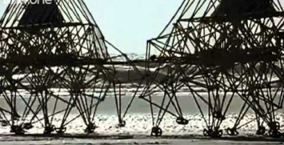 'ประติมากรรมเคลื่อนไหว' โดยศิลปินดัตช์แจนเซน Theo ทำเดินคนเดียวบนชายหาดที่วาดพลังงานจากลม