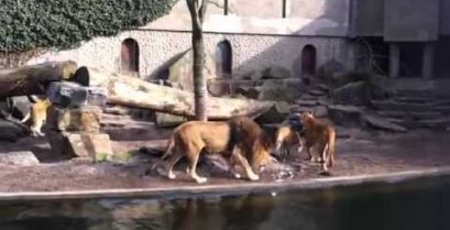 ในสวนสัตว์ล็อคของอัมสเตอร์ดัม, บันทึกผู้เข้าชมสิงโตเมื่อนกกระสาเป็นที่ดินใกล้พวกเขา. ภายในไม่กี่วินาที สิงโตตัวเมียก็โจมตีนกผู้เคราะห์ร้าย...