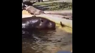 สองฮิปโปในสวนสัตว์ Blijdorp Diergaarde ในรอตเตอร์ดัม เนเธอร์แลนด์, พวกเขาช่วยลูกเป็ดตัวน้อยที่ไม่สามารถปีนกำแพงทะเลสาบเล็ก ๆ และไปถึงแม่ของเขาได้ทันใดนั้นฮิปโปทั้งสองก็ปรากฏตัวขึ้น, [...]