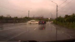 ที่ล้อของเครื่องโตโยต้า RAV4 SUV, คนขับรถอายุเพียง 15 ปี มีใบขับขี่เด็กฝึกงาน, เป็นเอที่แยกในขณะที่โคมไฟ สีส้ม. ปิดอยู่กลางถนน, หญิงสาวตื่นตระหนก [...]