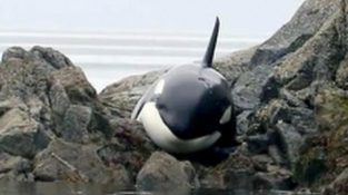 เมื่อวันพุธ 22 กรกฎาคม, 2015 ในฮาร์ทลี่ย์เบย์, เหนือชายฝั่งบริติชโคลัมเบียในแคนาดา, วาฬเพชฌฆาตที่ติดอยู่บนหินสำหรับแปดชั่วโมงหลังจากน้ำ, ขณะที่กำลังไล่ล่าแมวน้ำกับคนอื่นๆ [...]