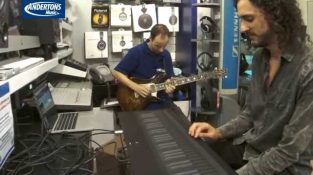 นักดนตรีที่สร้างสมบูรณ์เสียงของกีต้าร์ไฟฟ้ากับซินธิไซเซอร์ ROLI ซีบอร์ดแกรนด์. ซินธิไซเซอร์นี้ไม่มีคีย์ดั้งเดิม, แต่ทำงาน โดยการกดปุ่มพิเศษพร้อมเซนเซอร์ความดัน. [...]