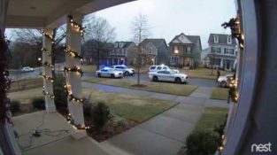 รักษาความปลอดภัยกล้องวิดีโอให้เรา โดยรังแสดงเป็นจี้ BMW crashing ในย่าน Brightwalk ของชาร์ล็อตต์หลังการไล่ล่าของตำรวจนาน.